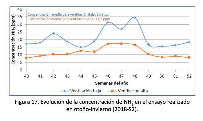 Los valores de concentración de amoniaco varían según la ventilación. Y esta difiere si es verano o invierno.